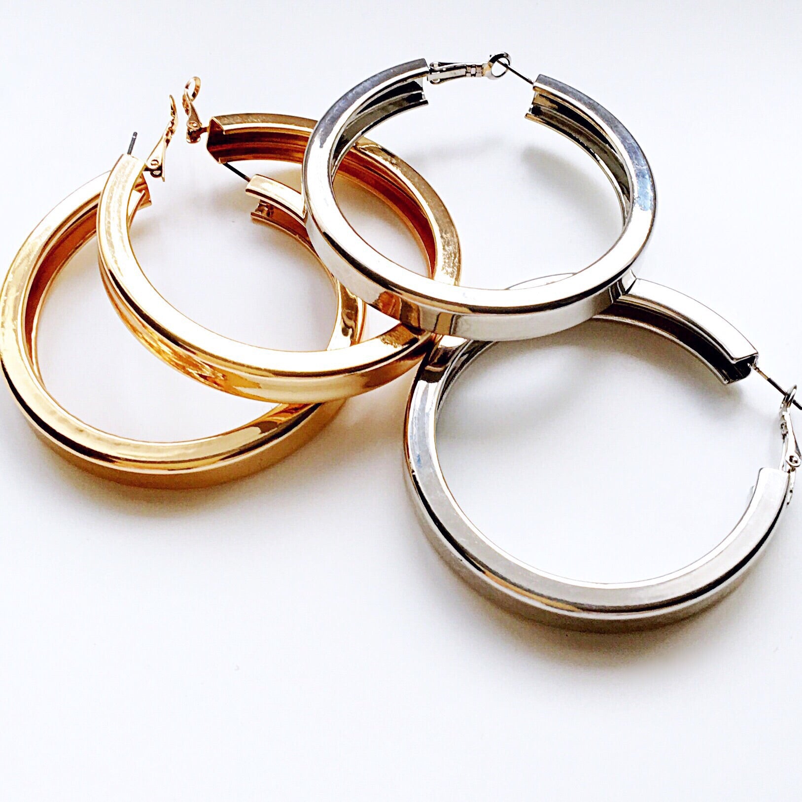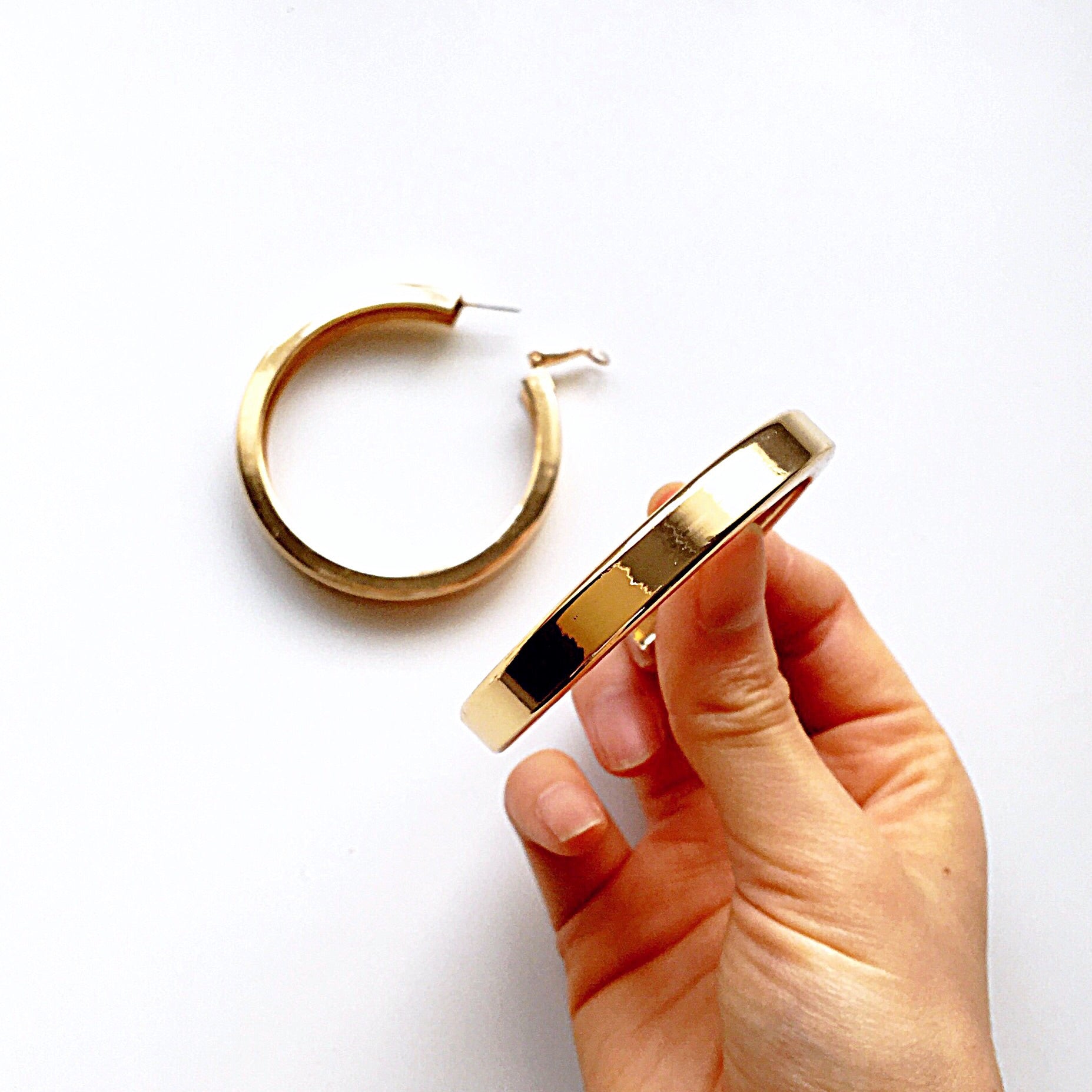 LARGE SQUARE CUT THICK CHUNKY HOOPS EARRINGS