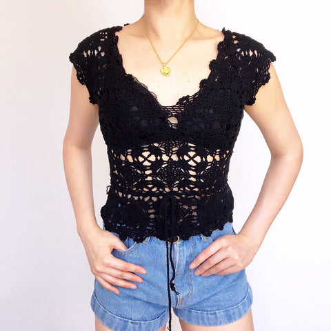 CROCHET KNIT V NECK VEST TOP