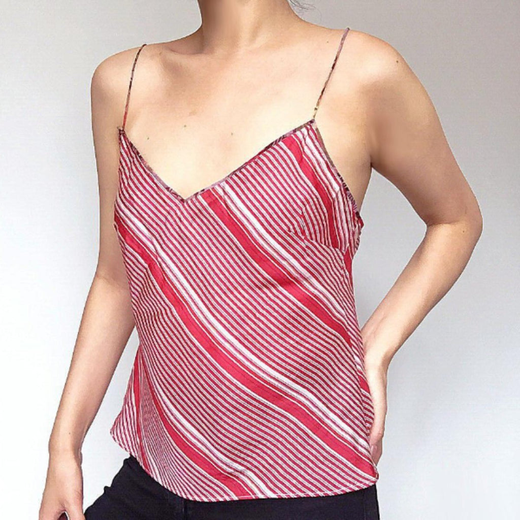 NICOLE FARHI PURE SILK RED STRIPES SPAGHETTI STRAPS V NECK LOW CUT CAMI VEST TOP